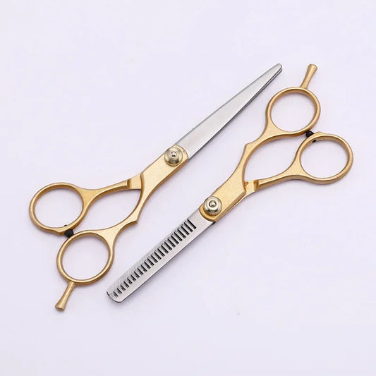 XUANFENG Gold Handle Hair Scissors 9cr18 Steel Gold Screws 6-inch Barber Cutting Scissors and Thinning Scissors Set